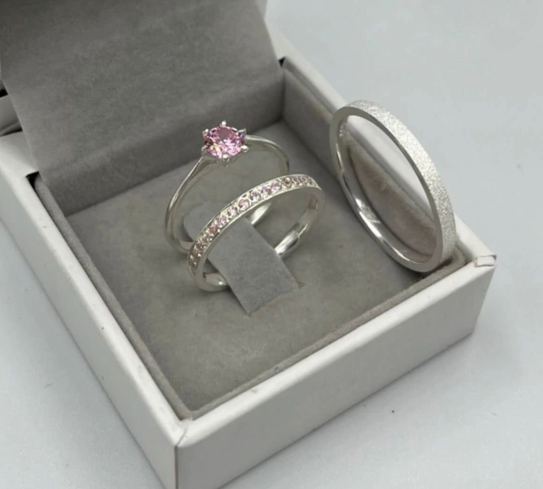 ALIANÇA 2MM FOSCA (15 PEDRAS ROSA CLARA)