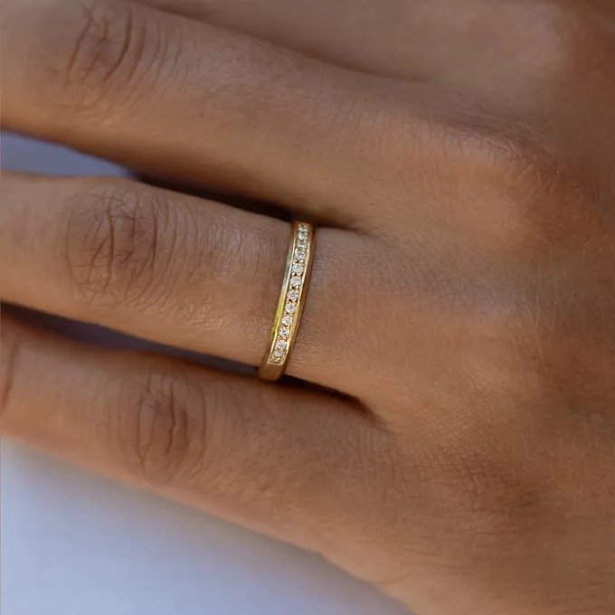 ALIANÇA DE CASAMENTO EM OURO 3MM CHANFRADO PEDRAS HELENA